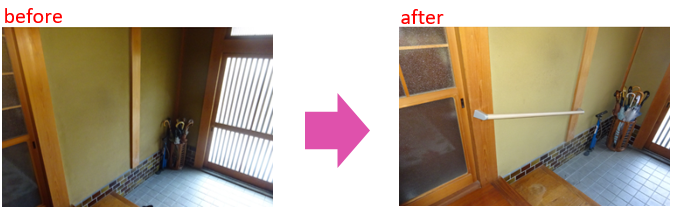 - 縦型手すりの設置:靴の脱ぎ履きや、上がり框(かまち)を昇降する際の支えとして設置します。